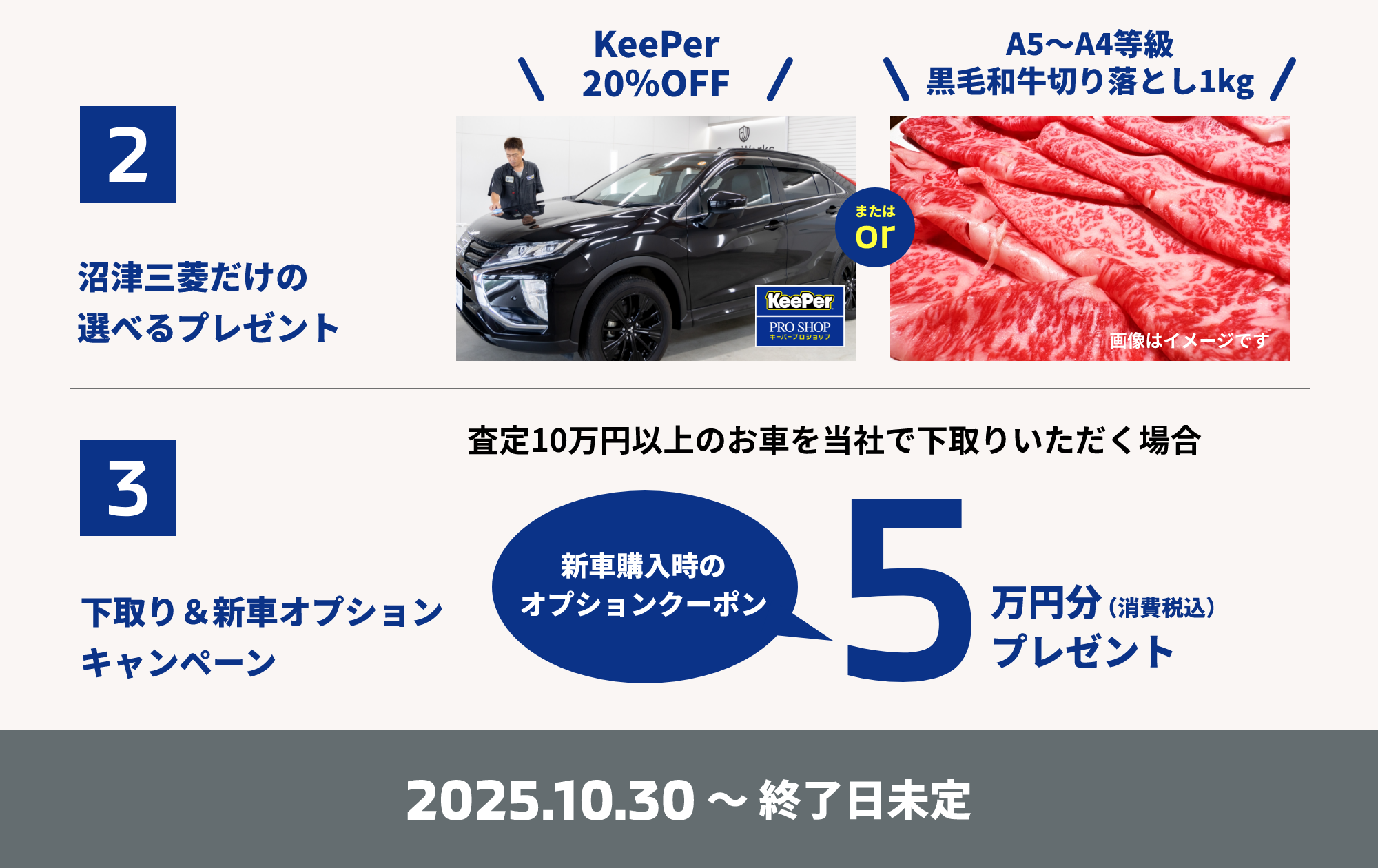 選べるプレゼントや下取り・新車オプションキャンペーンは、沼津三菱(沼津バイパス店・伊東店)だけの特別特典です。ぜひこの機会にご利用ください。