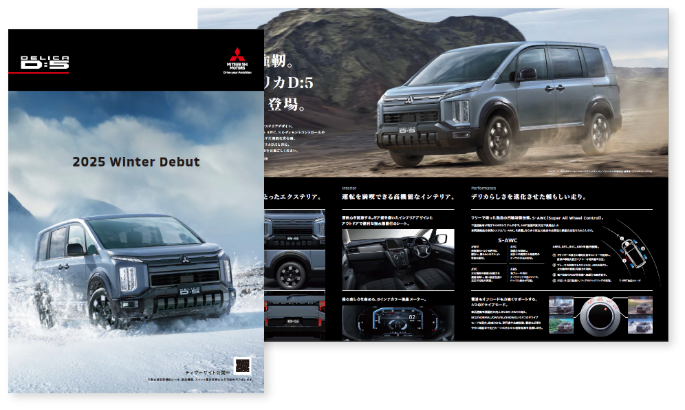 - 力強さと洗練を両立。ギア感あふれるフロントデザイン、18インチアルミホイール、上質なリアフォルムで“デリカらしさ”を際立たせました。