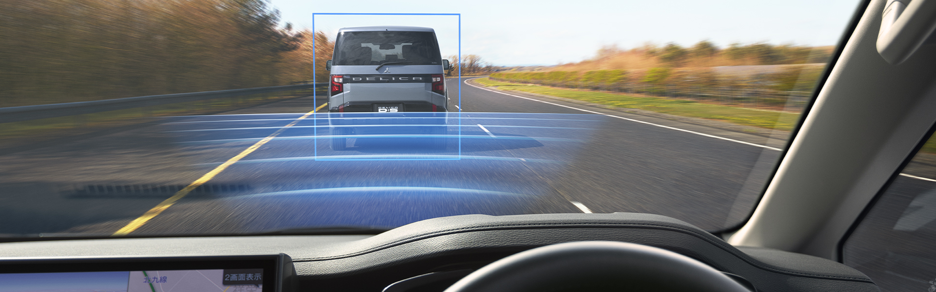 - 事故の危険を検知してお知らせ。さらに被害を予防・回避・軽減できるようサポート。三菱e-Assistはできる限り事故被害を減らし、安全な運転をサポートするためのテクノロジーです。